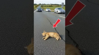 Kind Driver Halts Traffic to Save Helpless Kitten From Highway