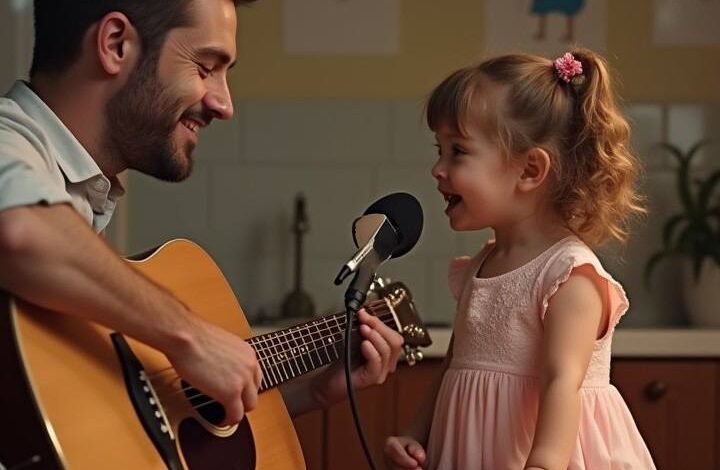 Sometimes, the most powerful performances don’t happen on a stage. They happen right at home — around a kitchen table, between a father and daughter who simply love to sing together. When a 7-year-old girl sat beside her dad with nothing but a microphone and a guitar, no one expected the video to take over the internet.
