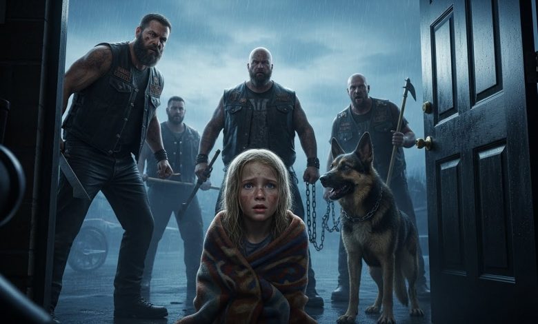 The German Shepherd was soaked, mud clinging to his fur, his body shaking from exhaustion. And on his back, arms wrapped tightly around his neck, was a little girl.