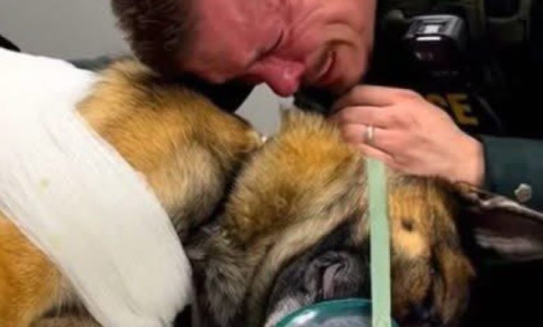 He drove with lights and sirens all the way to the emergency veterinary hospital, one hand on the wheel, the other pressing against the open wound.