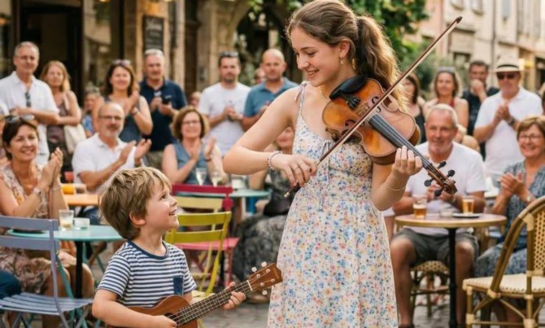 What looked like a casual outdoor performance quickly became something much more engaging when two young performers began playing together. At first, it seemed like a lighthearted moment—but the connection between them made it stand out almost immediately.