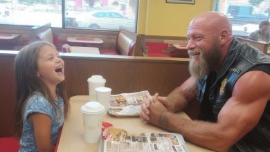 Every Saturday this terrifying biker meets a little girl at McDonald’s, and the manager finally called the cops. The leather-clad…