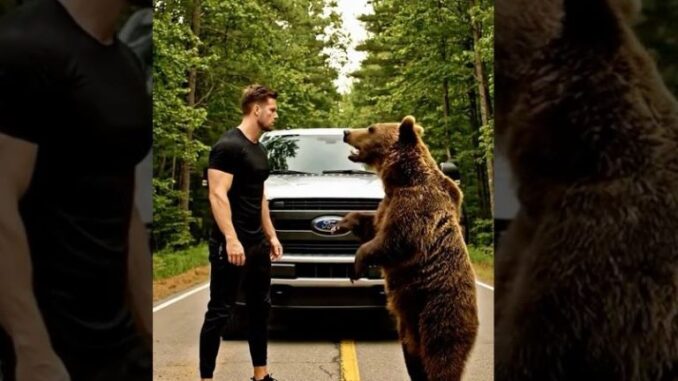 Driving through a winding forest road one misty morning, a couple noticed something large moving across the path. As they slowed down, they realized it was a mother bear, standing tall in the middle of the road — blocking traffic. But this wasn’t aggression. It was desperation.
