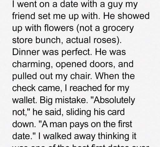 Looking back, that Italian dinner serves as a profound life lesson. Eric had provided all the surface-level elements of a romantic beginning—the flowers, the suits, the polite doors held open—but they were all hollow. It taught me that true generosity is never followed by an invoice, and courtesy is not a down payment on future compliance. Kindness loses its soul the moment it is treated as a line item on a balance sheet. I never paid that invoice, and I never saw Eric again. However, I did gain something valuable from that night: a sharpened intuition and the realization that a man who insists on paying for your dinner might just be trying to buy the right to own the evening. I didn’t pay the bill, but I certainly paid attention, and that has made all the difference in every date I’ve been on since.