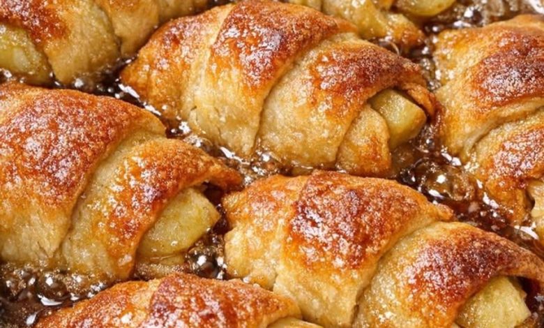 Step 2: Wrap the Dumplings: Lay a dough triangle flat. Place 2 apple wedges at the wide end, fold the sides in slightly, and roll toward the point. Place them seam-side down in a greased 4–6 quart slow cooker.