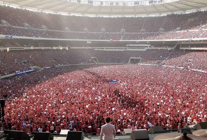 Midway through the set, something remarkable happened. The performer’s call-and-response with the audience turned into a unifying roar. Tens of thousands of voices echoed back every sound, filling the stadium with an energy so powerful it felt like the earth itself was moving.