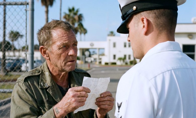 The sun was sinking over Coronado Naval Base when two security guards stepped forward and blocked the entrance to the graduation hall. The man standing in front of them wore a torn, salt-stained jacket that carried the smell of ocean water and concrete dust. His hands—scarred, rough, and trembling—held up a wrinkled invitation with his son’s name on it.