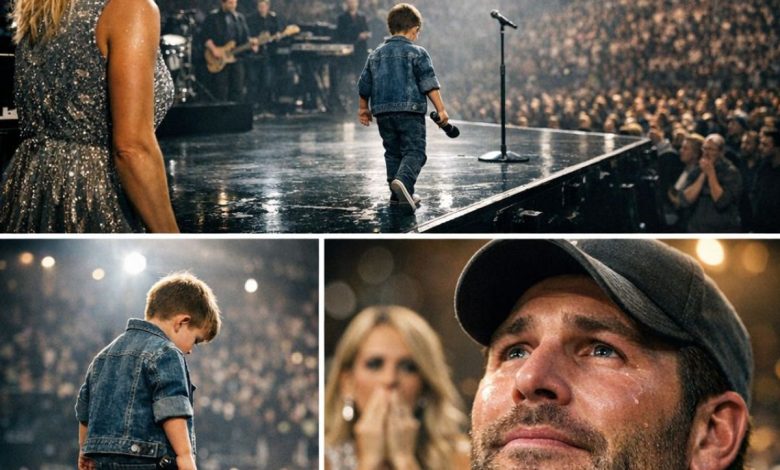 Everyone thought they knew what was coming. A sweet family duet. A safe, planned moment. But halfway through the song, Carrie felt the change. Her son stopped singing. The band froze. The lights stayed on. For a second, 18,000 people didn’t breathe. He turned away from the microphone and walked to the edge of the stage, where his dad sat. No lyrics. No music. Just a small voice, steady now. “I just wanted to see if you were proud.” Carrie’s hands stayed on the piano, but she didn’t play. She watched. Mike Fisher stood up, nodded once, eyes glassy, and whispered something only their son could hear. That was enough. The boy smiled, went back to the mic, and finished the song stronger than he started. The applause came late — because love reached the room first.