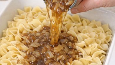 Combine canned French onion soup and these two ingredients with uncooked egg noodles in a casserole dish for a delicious meal you’ll crave